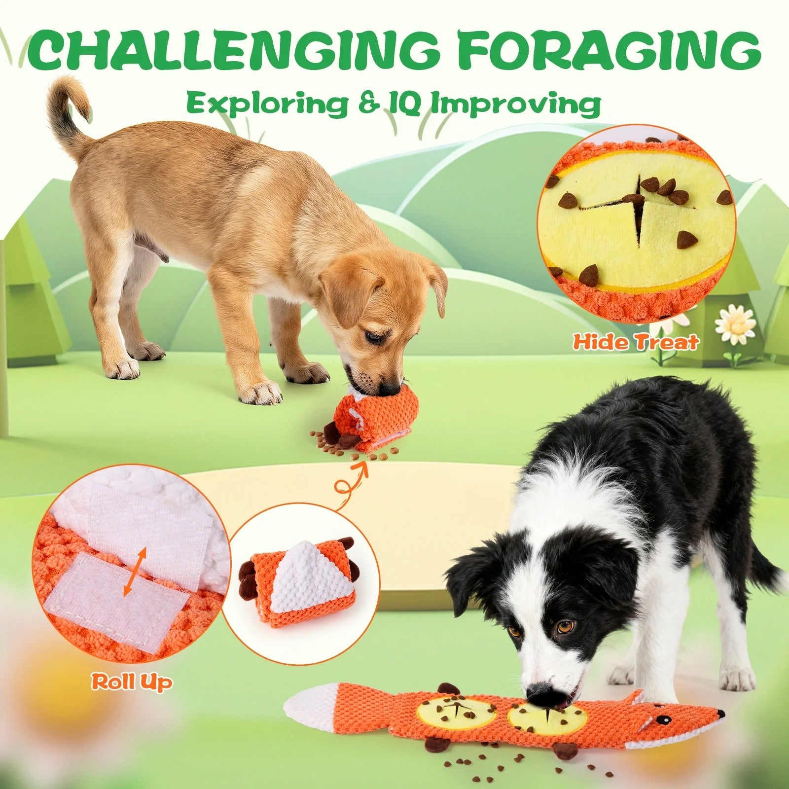 Treat pockets promote sniffing, mental stimulation, and interactive play.