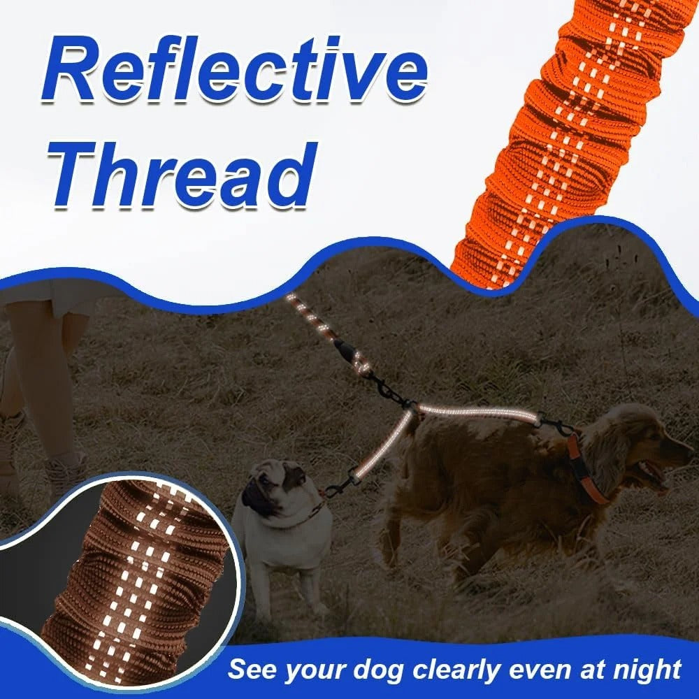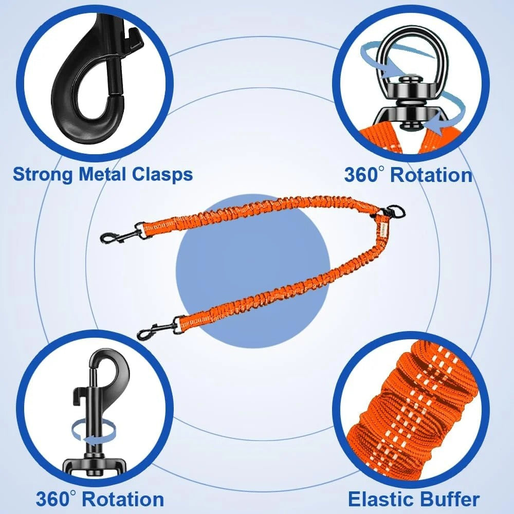 1x Dual Dog Leash with Shock-Absorbing Bungee and 360° Swivel